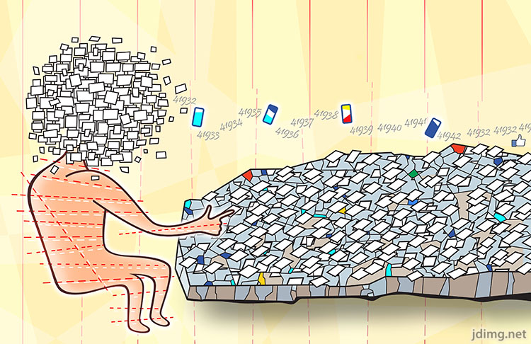 Fragmentivity while Ryan Avent writes about the effects of smartphones, emails and social networks on productivity, i show here a Worker at his post, in a state of IT-induced Fragmentation. Fragments reflect other Fragments, thus leading to Fragmentivity Hell, with inevitable effect on his well-being, not to mention his output. the grey numbers show the number of emails in my Inbox at the time. (0)